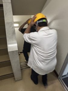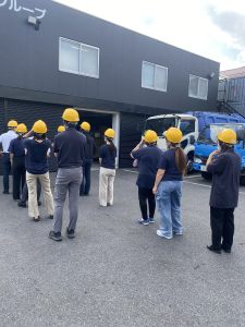 地震や火災など万が一の災害を想定し、社員一人ひとりが迅速かつ冷静に行動できるよう訓練を行うことを目的としています。